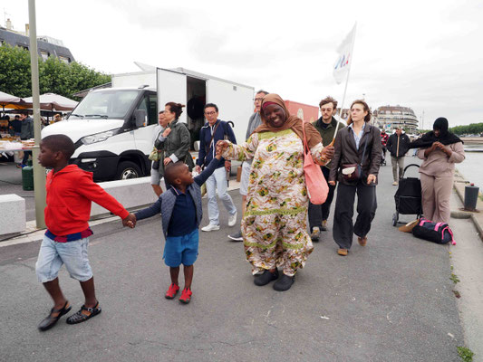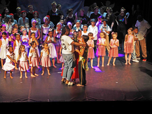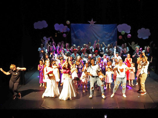 4ème temps : les enfants ont dansé sur des rythmes endiablés en hurlant tantôt chiwouaoua, tantôt Macaréna. Les parents venus en avance se sont joints à cette fête. Ils nous ont aussi aidé à débarrasser et laver la salle.